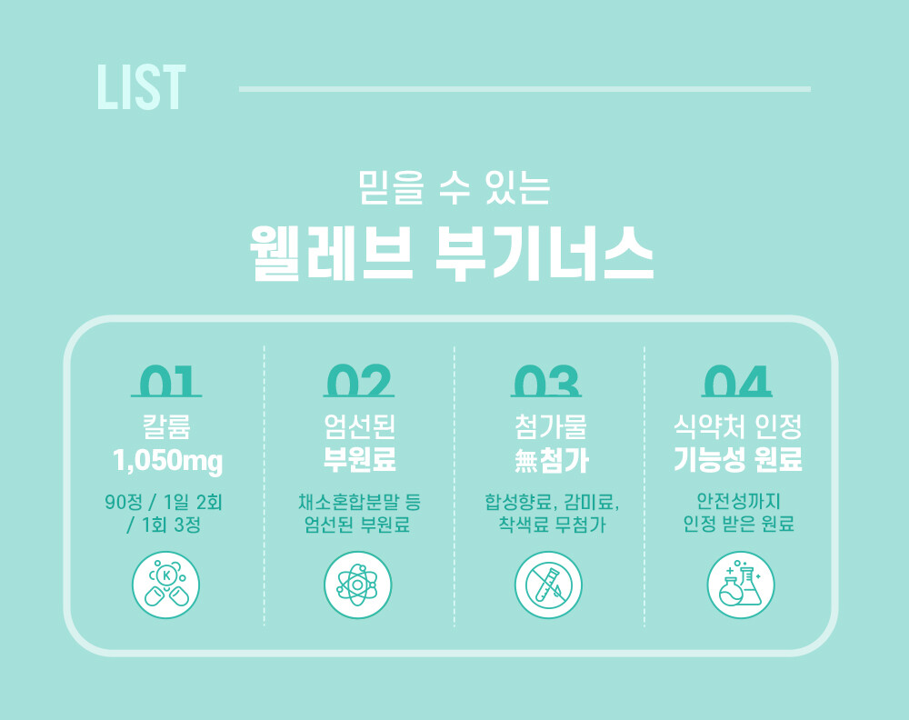 ✔️칼륨 1,050mg + 마그네슘 + 해조칼슘 3대 미네랄 설계