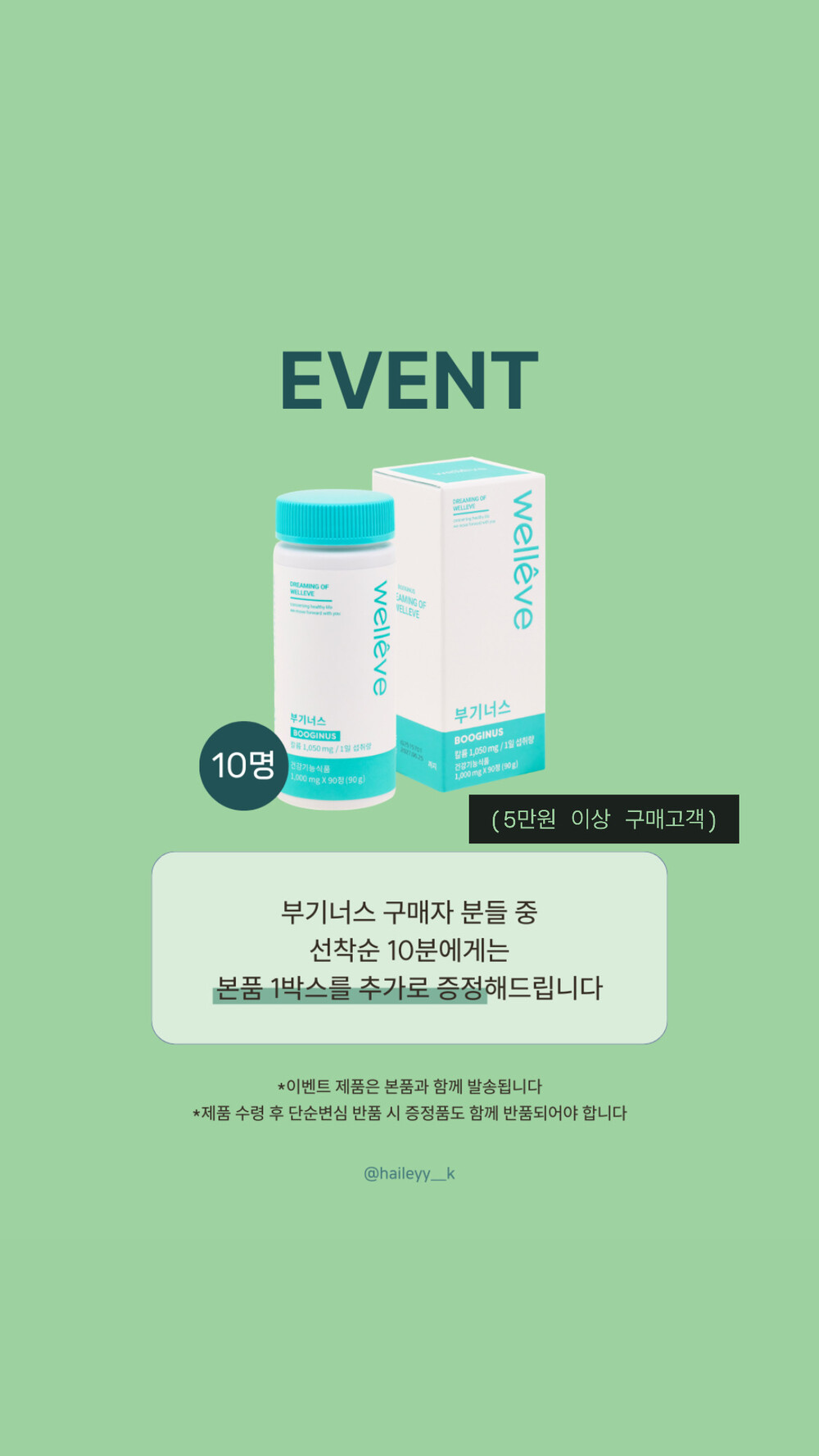 🎈5만원 이상 구매고객에 한해 선착순 10분에게는 4만원 상당의 본품 1박스를 추가로 보내드립니다.